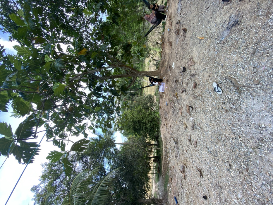 The scene depicts an outdoor rural or semi-rural area in Teupinbatee, Indonesia, under a bright sky with scattered clouds