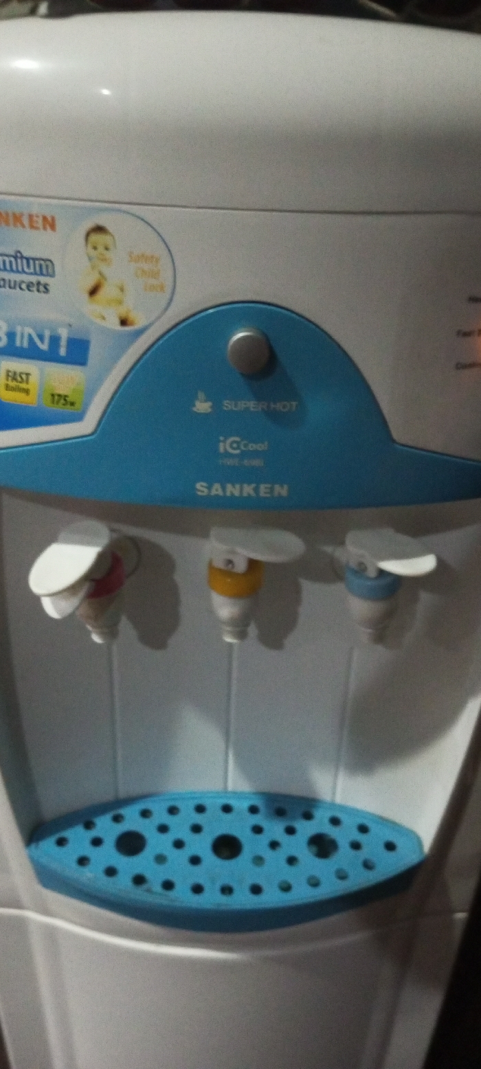 - "The scene depicts a close-up, frontal view of a white SANKEN HWE-680L 'iCCool' water dispenser, located indoors, identified as being in the city of Aral, Kyrgyzstan" by FM-gCpqA2, licensed under CC BY 4.0