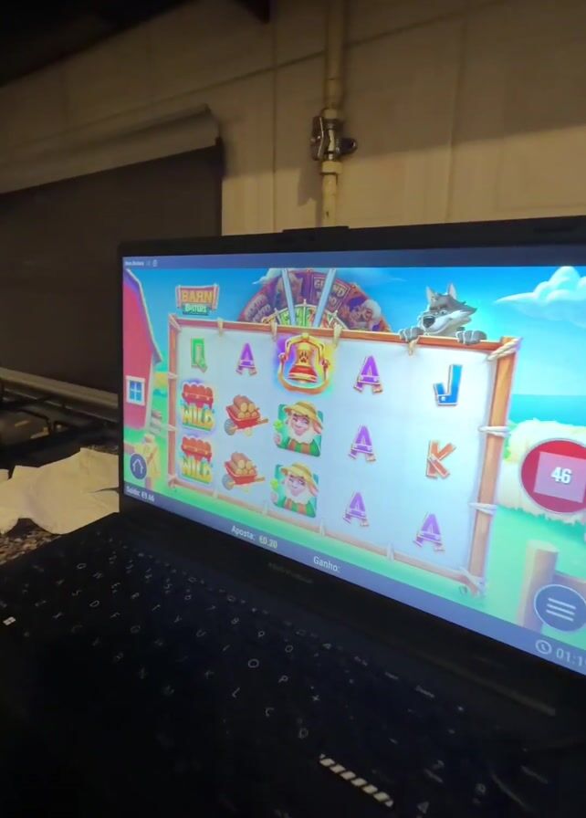 laptop displaying a slot machine game with a "Barn Festival" theme