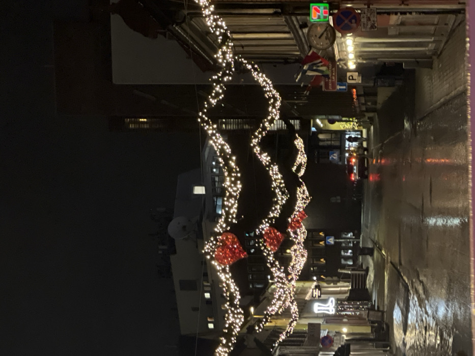 - "A nighttime view down a narrow street, heavily decorated with strings of small white lights" by FM-euYvn2, licensed under CC BY 4.0
