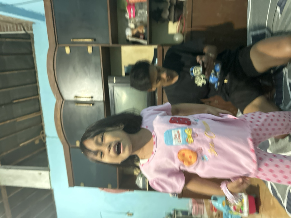 An indoor scene in a residence located in Kecamatan Pati, Indonesia, depicts two individuals