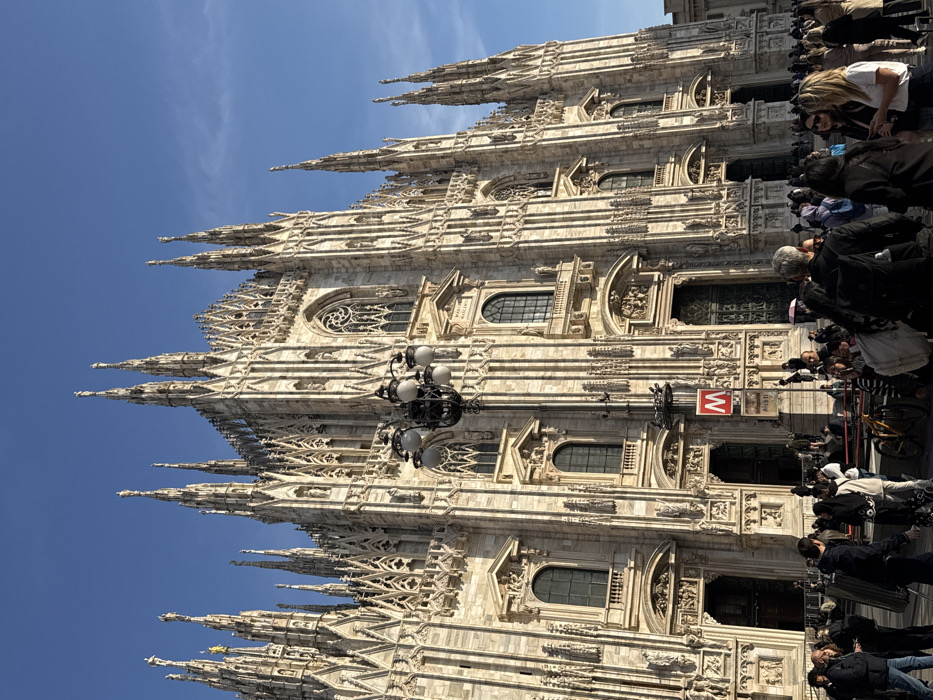 - "The image displays the Duomo di Milano, a large Gothic cathedral, situated in Piazza del Duomo, Milan, Italy, under a clear blue sky with minimal cloud cover" by FM-12bcD2, licensed under CC BY 4.0