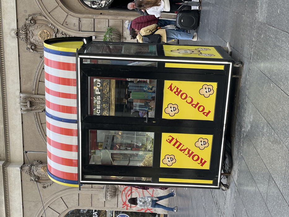 - "The image displays a mobile popcorn kiosk situated on a pedestrian street in Belgrade, Serbia" by FM-yRgEk2, licensed under CC BY 4.0