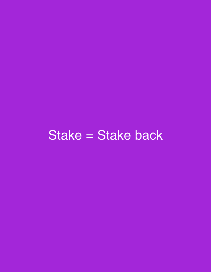 The scene consists of a solid purple background. Centered on this background is white, sans-serif text that reads "Stake = Stake back". No individuals, additional objects, or discernible environmental features are present. The location of this scene is in the city of Sofia, Bulgaria.