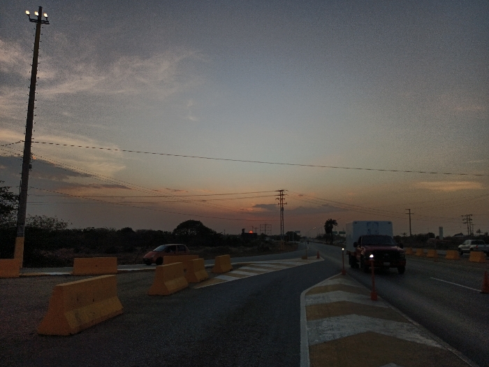 This image captures a roadside scene at dusk in El Dátil, Venezuela