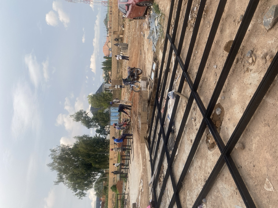 This image depicts an active construction site located in Jos, Nigeria, under a partly cloudy sky