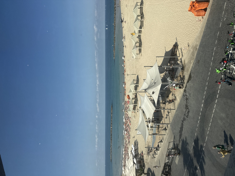 - "The image presents an elevated, wide shot of Gordon Beach in Tel Aviv, Israel, under a clear, bright blue sky" by FM-TVPKO2, licensed under CC BY 4.0