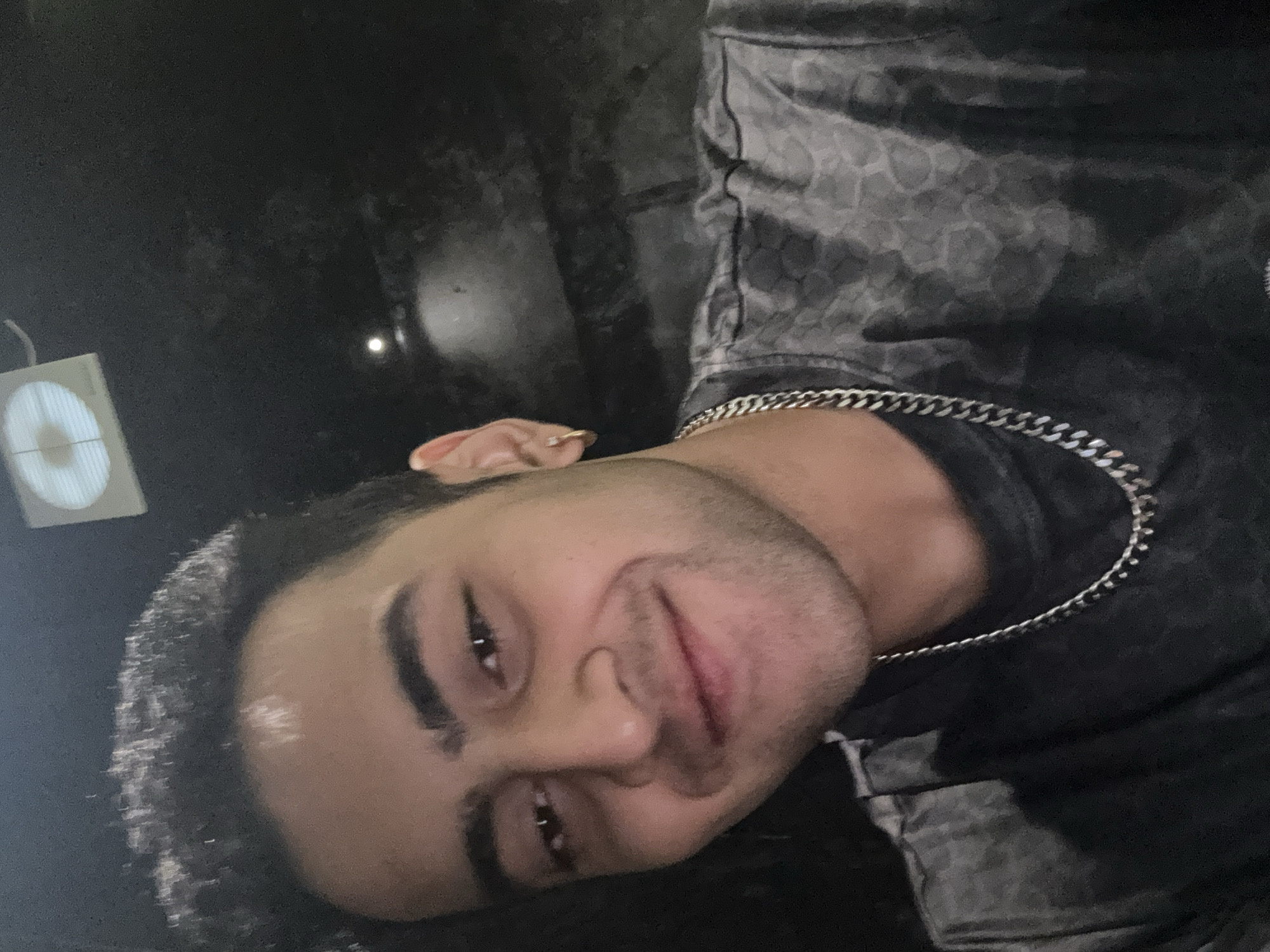 A close-up, slightly angled portrait of a dark-haired man with brown skin