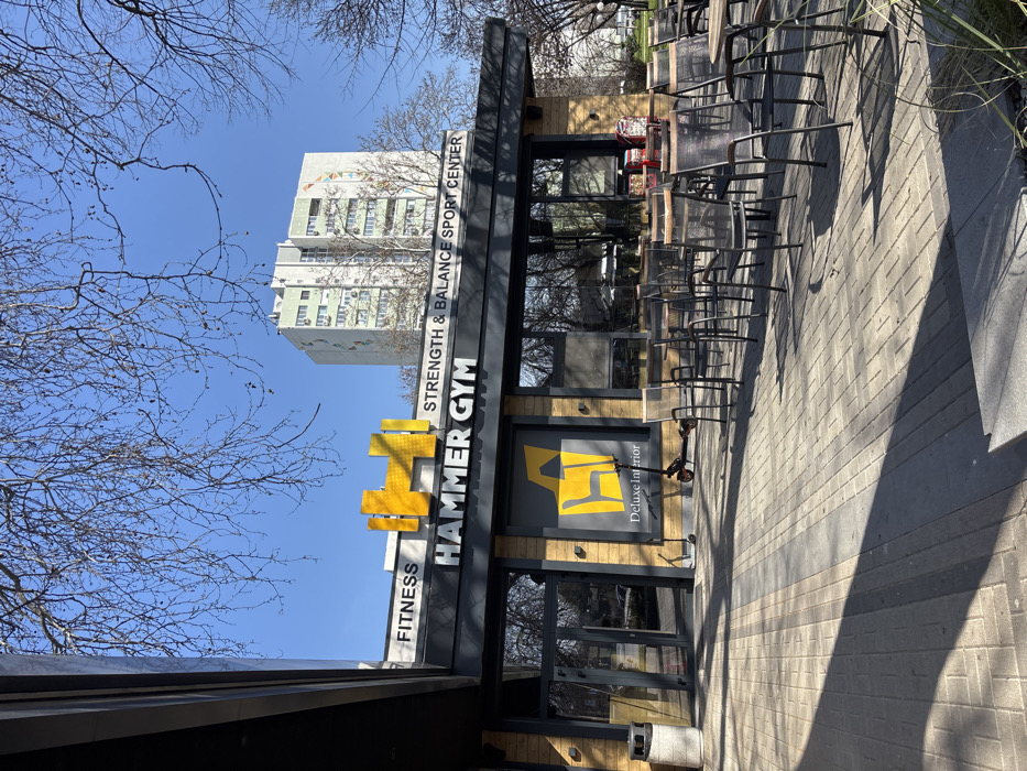 - "The image captures the exterior of "HAMMER GYM," a "Fitness Strength & Balance Sport Center," located in Plovdiv, Bulgaria" by FM-5DUb62, licensed under CC BY 4.0