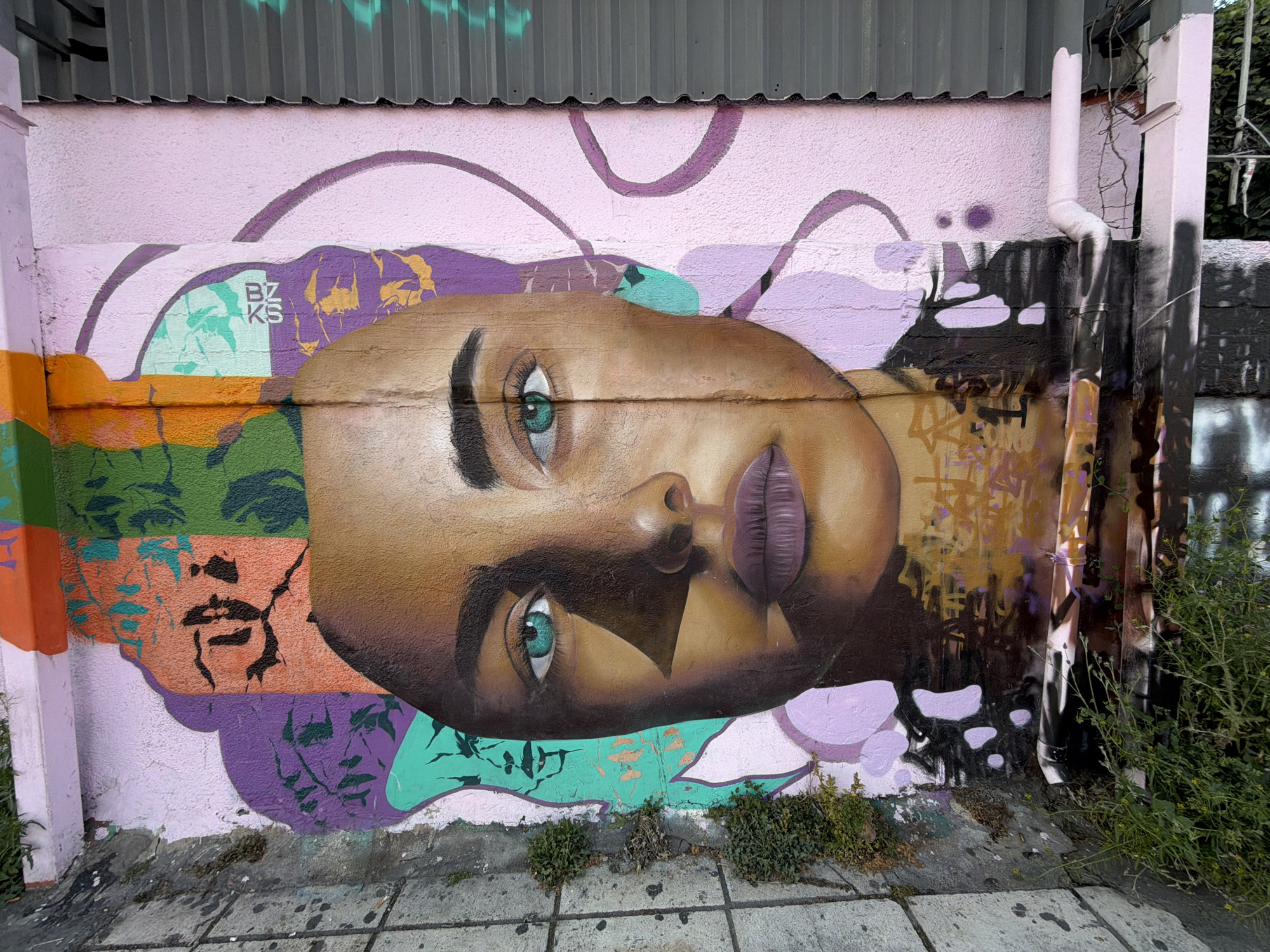 - "An outdoor wall in Thessaloniki, Greece, features a large-scale graffiti mural of a human face oriented horizontally" by FM-Q1XvS2, licensed under CC BY 4.0