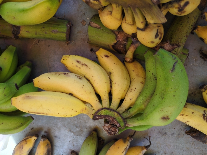 - "A close-up shows a cluster of ripening plantains" by FM-M0G9X2, licensed under CC BY 4.0