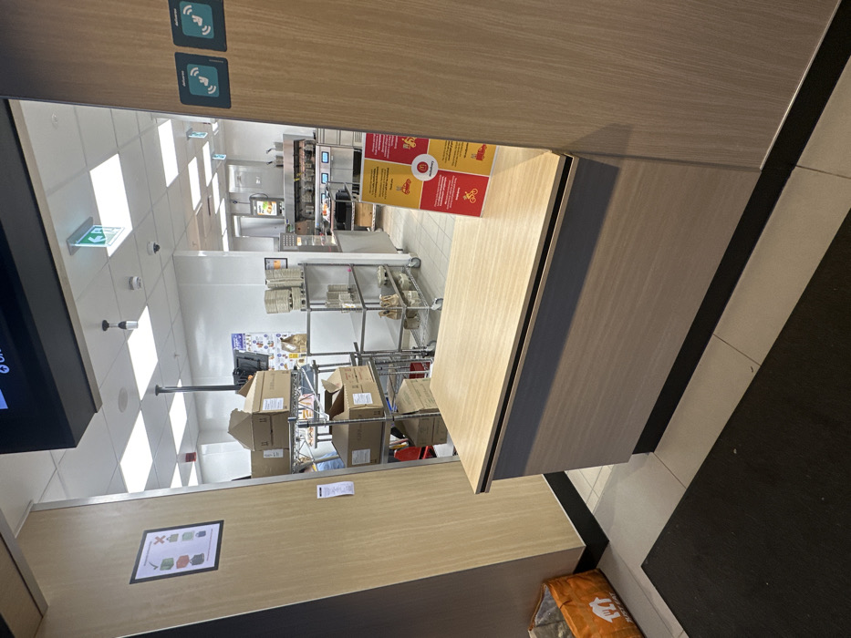 - "This image depicts the interior of a commercial food service establishment, specifically a delivery or takeaway pickup point and its adjoining kitchen area, located in Chatham, United Kingdom" by FM-Ohpnb2, licensed under CC BY 4.0