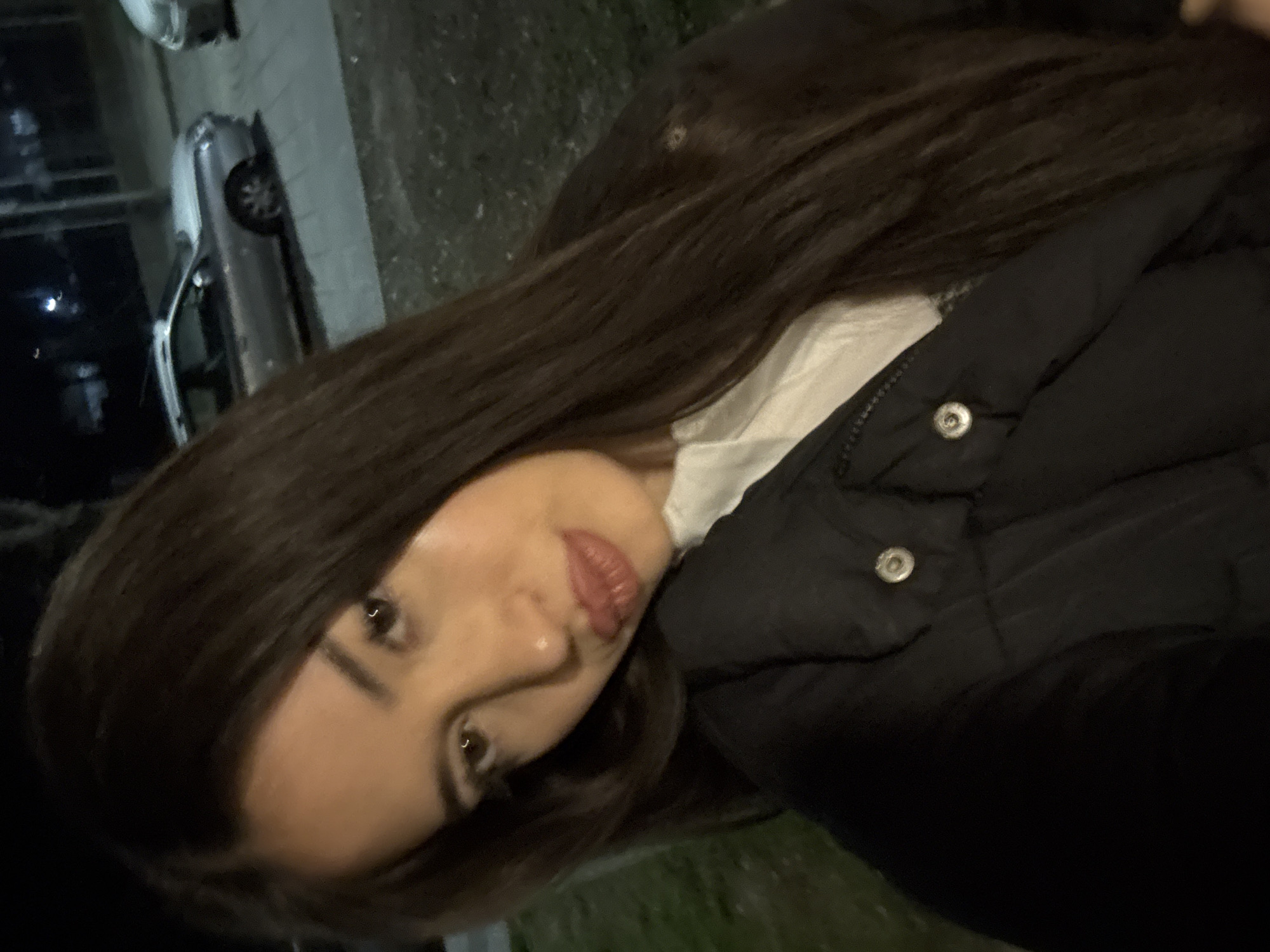 The image depicts a nighttime selfie of a young female in Plovdiv, Bulgaria