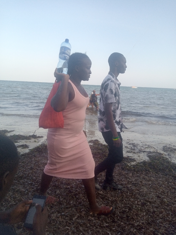 The image depicts a beach scene in Shanzu ward, Kenya