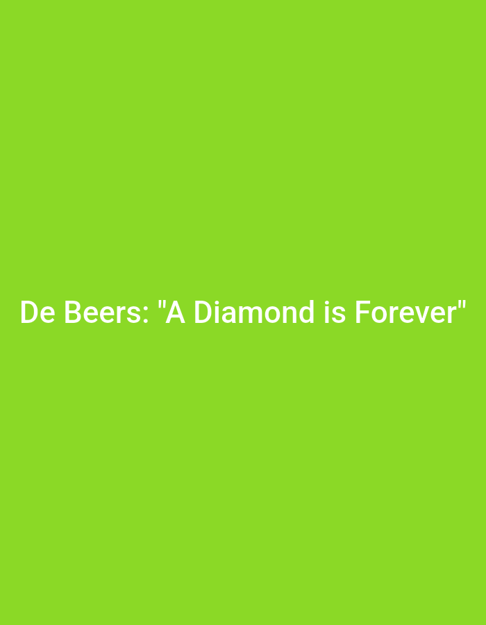 Located in the city of Mansehra, Pakistan, the image consists of a solid, uniform lime green background. Centered on this background is white text, rendered in a sans-serif typeface. The text reads: 'De Beers: "A Diamond is Forever"'. No people, subjects, objects other than the text, actions, interactions, or additional environmental elements are depicted within the image frame.