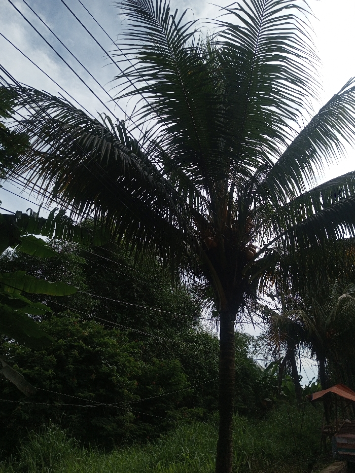 - "A tall coconut palm dominates the foreground, its trunk extending from tall grass and dense greenery" by FM-3hVyZ2, licensed under CC BY 4.0