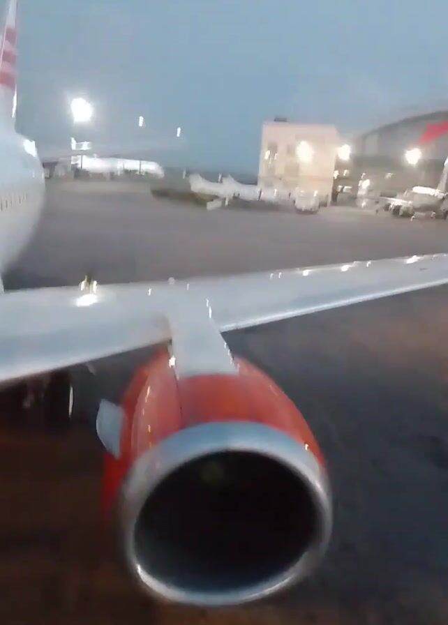 The video appears to be taken from the perspective of someone disembarking an airplane