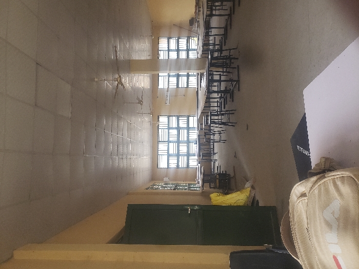 This image depicts the interior of a large, empty classroom or laboratory facility located in Kaninkon, Nigeria