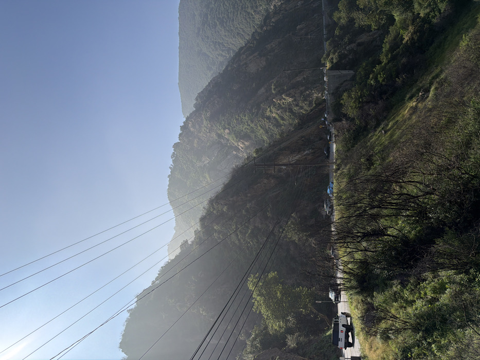 - "This image depicts a mountainous landscape along a roadway in the Unincorporated Santa Monica Mountains, United States of America, under a clear, bright blue sky with significant atmospheric haze" by FM-bST8C3, licensed under CC BY 4.0