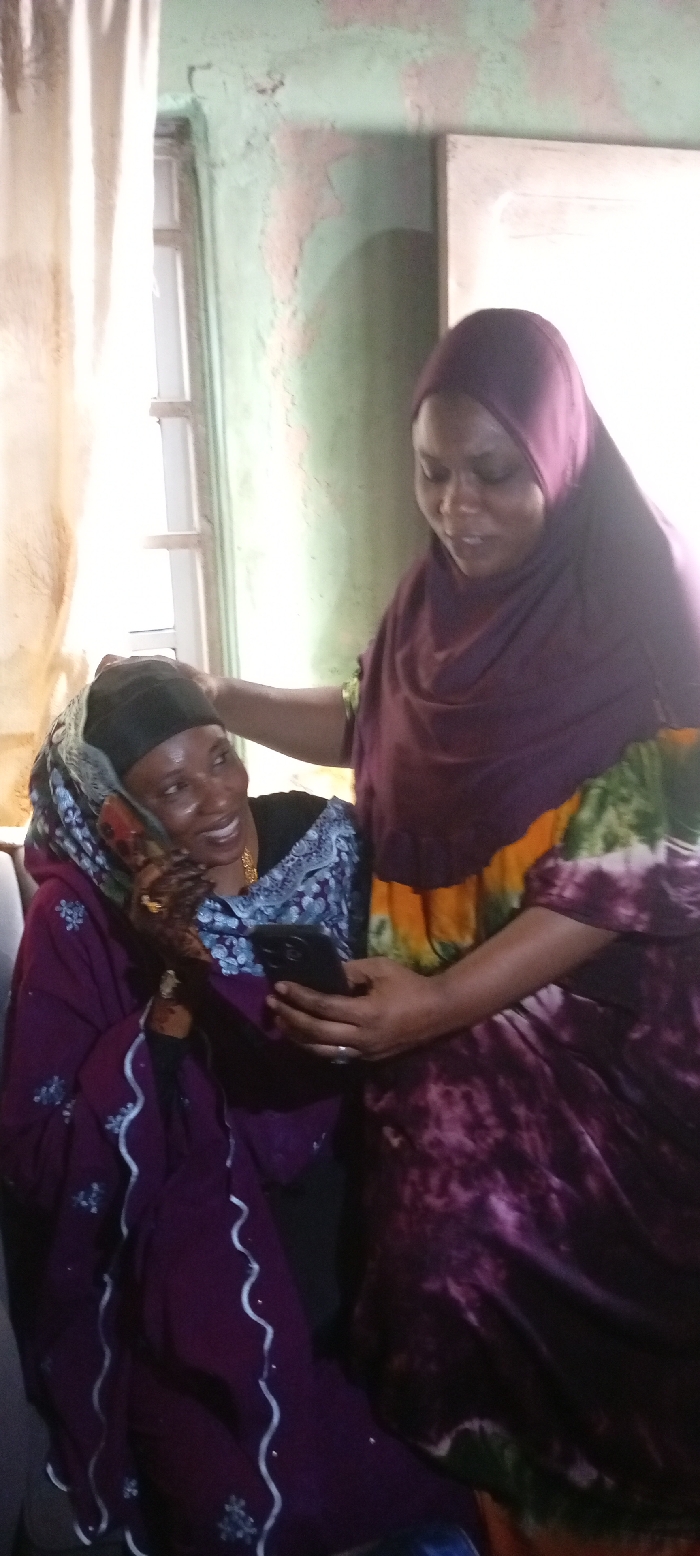 An indoor scene in Dan Maliki, Nigeria, features two adult females in a close interaction