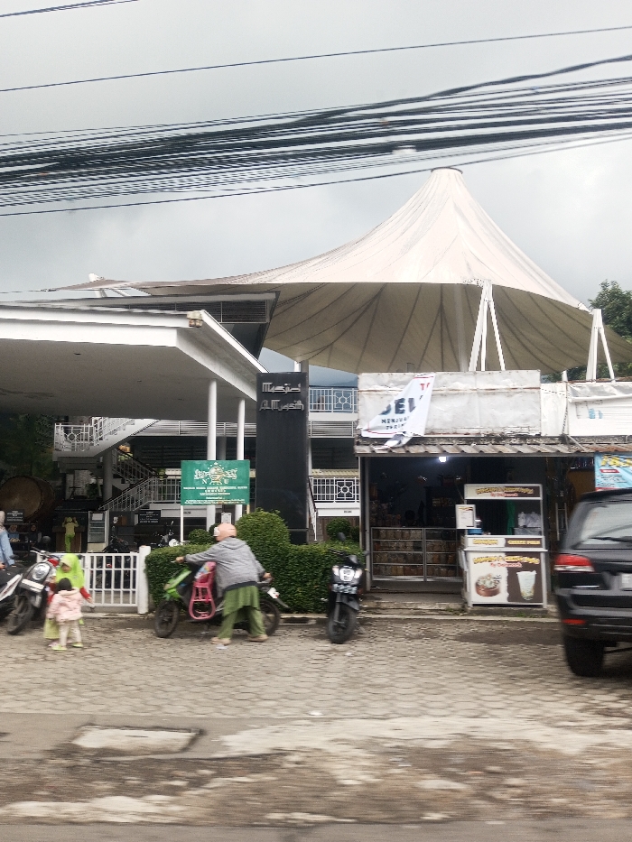 - "The image displays a street-level view of a commercial and religious complex, specifically "Masjid Al-Arsh" (Al-Arsh Mosque), located in an Indonesian or Malay-speaking region based on visible signage" by FM-WPxfq1, licensed under CC BY 4.0