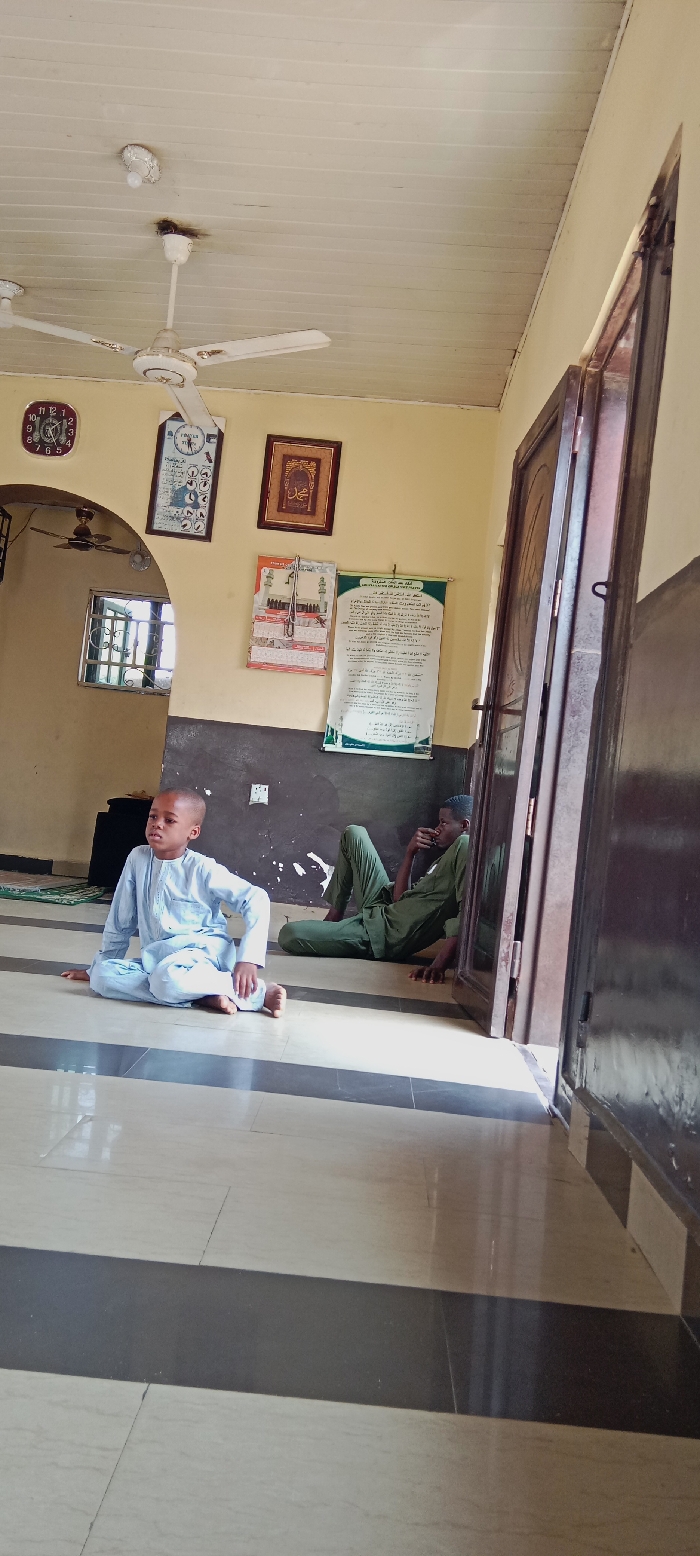 - "An indoor scene in Lokoja, Nigeria, depicts two males seated on a tiled floor with light-colored walls and a paneled ceiling" by FM-K2lr33, licensed under CC BY 4.0