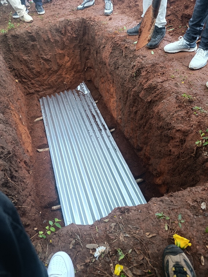 The scene depicts an open burial site in the city of Muthetheni ward, Kenya