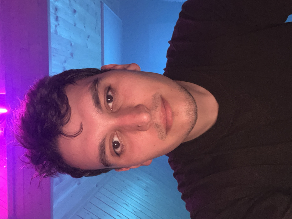 An individual, identified as male, is depicted in a close-up, frontal view, from the upper torso upward