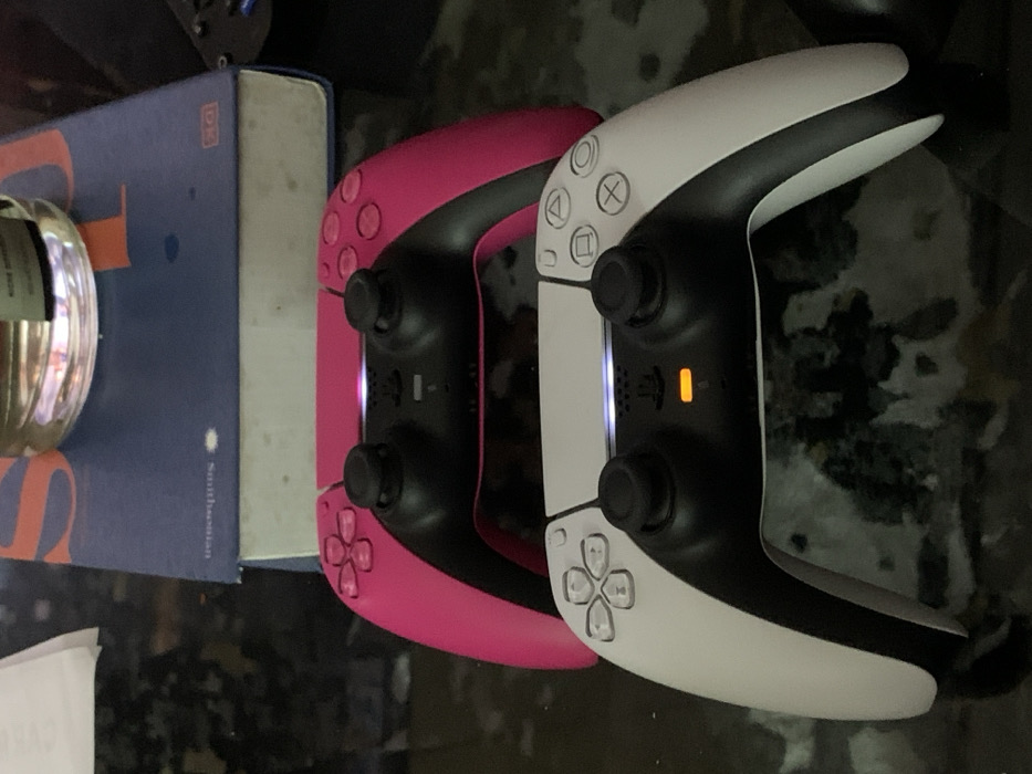 - "Two PlayStation 5 DualSense controllers, one pink and one white, sit on a reflective surface" by FM-8xdlM2, licensed under CC BY 4.0