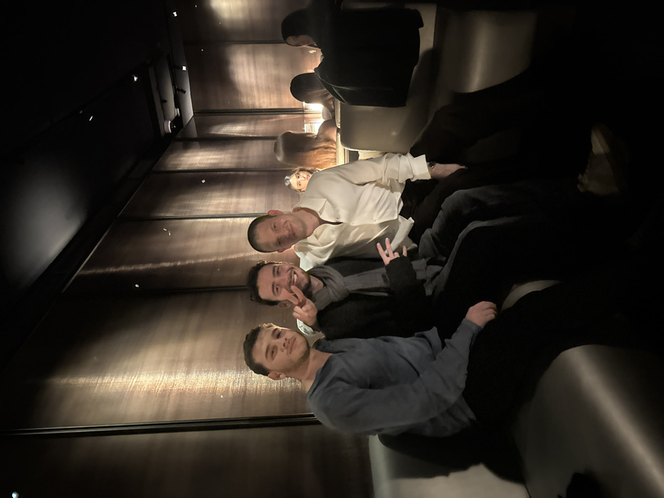 - "Four men are seated on a long couch in a dimly lit room with textured walls" by FM-SHEMl1, licensed under CC BY 4.0