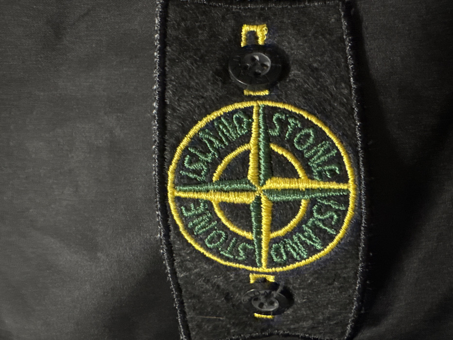 - "The image displays a close-up, high-resolution view of a black rectangular fabric patch featuring the Stone Island compass logo" by FM-q55R13, licensed under CC BY 4.0