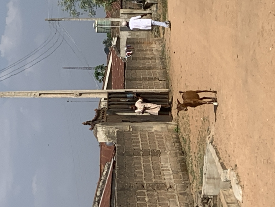 The image depicts an outdoor scene on a sunny day in the city of Oyo, Nigeria