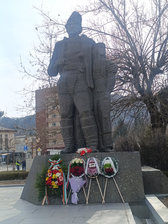 - "A dark gray stone monument depicting two figures stands centrally in a paved plaza in Zlatograd, Bulgaria" by FM-jKEpq2, licensed under CC BY 4.0