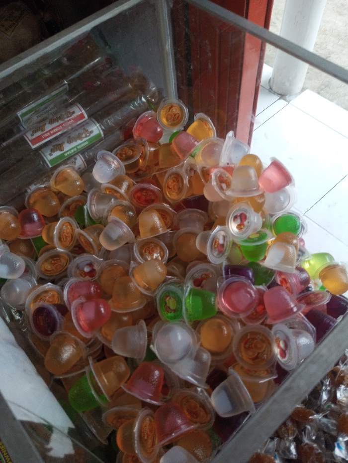 - "A clear glass display case overflows with small, colorful jelly cups" by FM-aMjHv1, licensed under CC BY 4.0