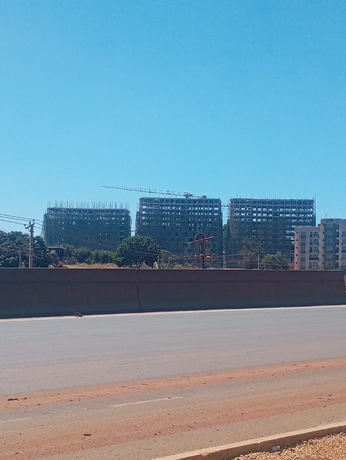 This image depicts a daytime scene in Gitaru ward, Kenya, dominated by urban development