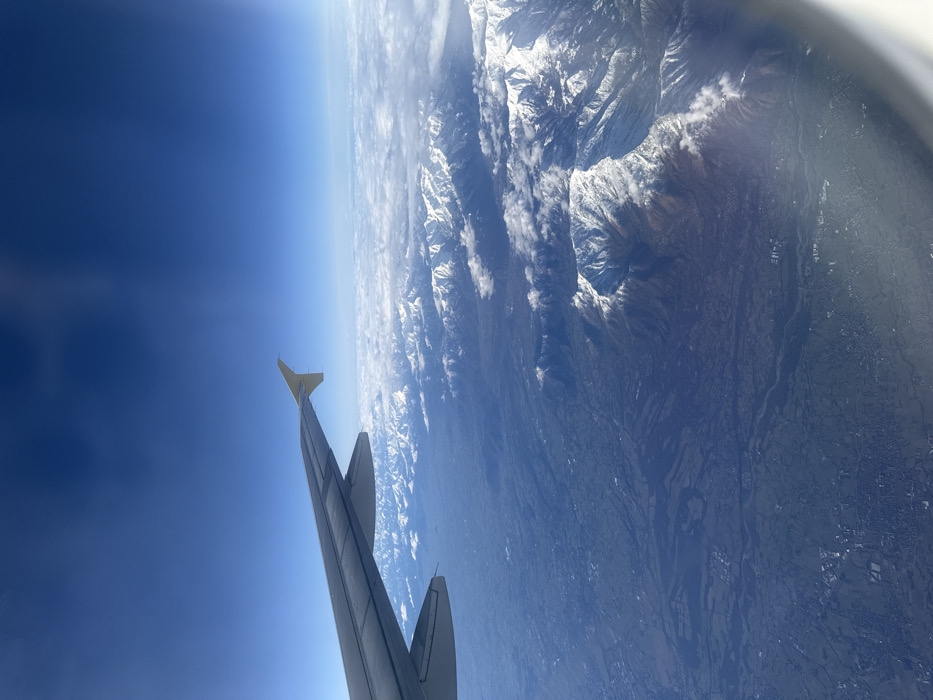- "The image displays an aerial view captured from an aircraft, featuring a portion of the grey airplane wing with a yellow winglet positioned in the upper-left quadrant" by FM-IXb3V2, licensed under CC BY 4.0