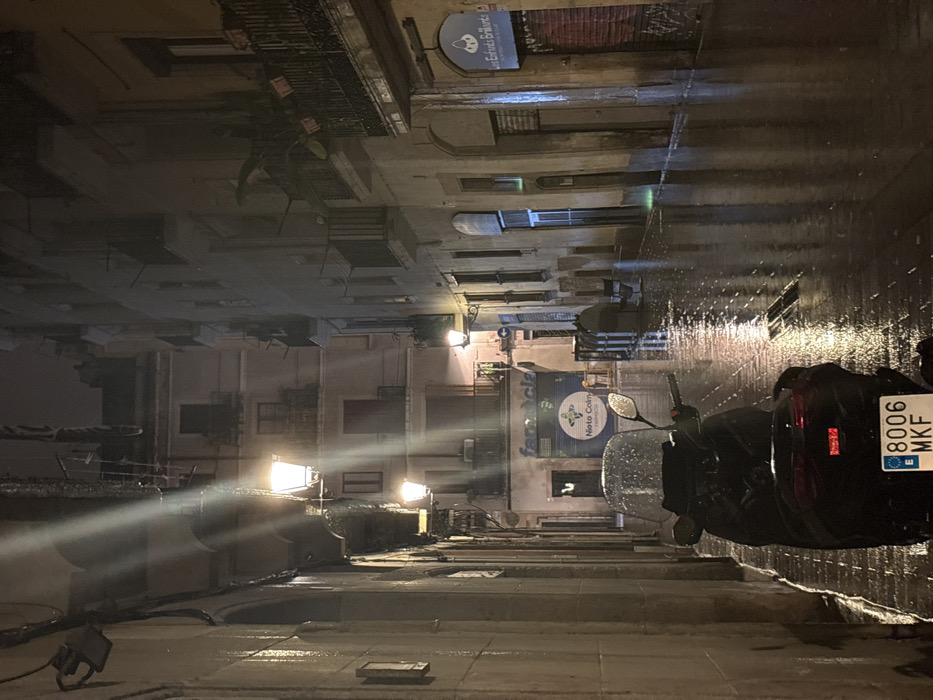- "A narrow European street scene at night, likely during or after a rainstorm, is lit by streetlights" by FM-evAoG3, licensed under CC BY 4.0