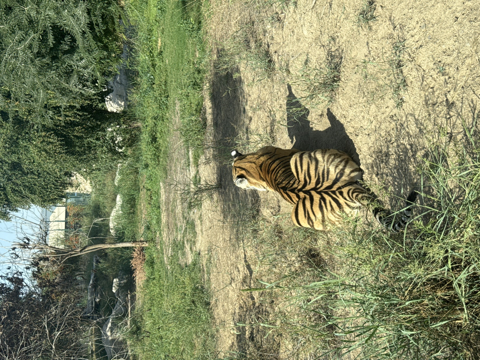 - "A Bengal tiger is depicted from a dorsal perspective, resting on dry, sandy ground with interspersed green grass" by FM-GMxhS2, licensed under CC BY 4.0