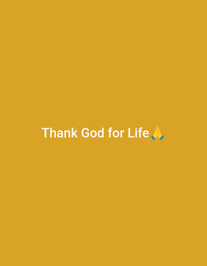 This image, presented as being located in the city of Narayi, Nigeria, displays a solid mustard yellow background. Centered horizontally is the phrase "Thank God for Life" rendered in white sans-serif text. Immediately adjacent to and following the word "Life" is a white and blue 🙏 (folded hands) emoji. No people, discernible objects other than the text and emoji, or specific environmental features of Narayi, Nigeria, are visually present within the image itself.