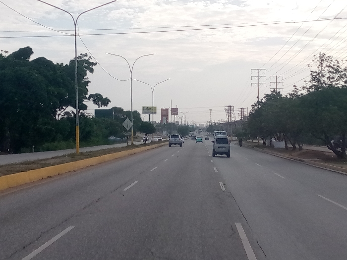 This image depicts a multi-lane paved highway in El Piache, Venezuela, under an overcast sky