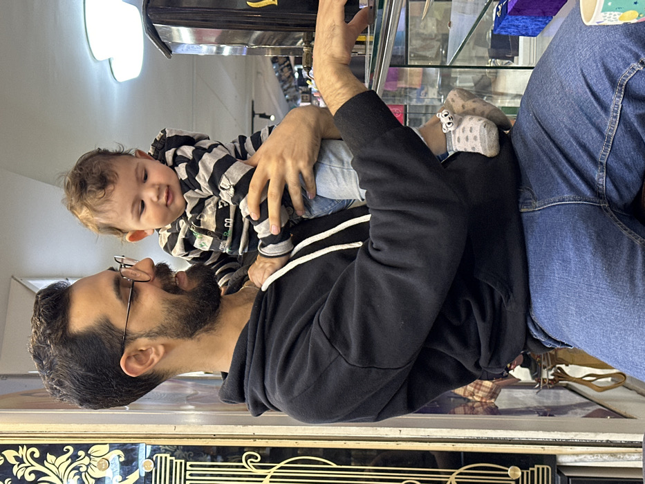 - "An indoor scene depicts an adult male holding an infant in what appears to be a commercial establishment" by FM-shBps1, licensed under CC BY 4.0