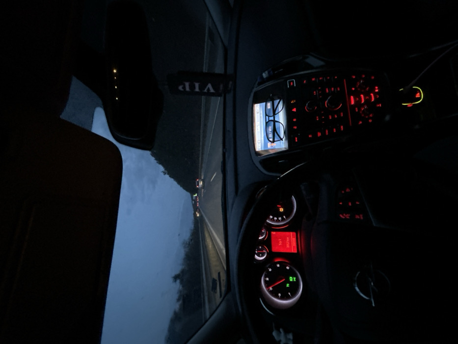 - "The scene depicts the interior of a vehicle on a multi-lane highway at dusk or night, presumably near Baliovtsi, Bulgaria, as viewed from the driver's perspective" by FM-MRBhH3, licensed under CC BY 4.0