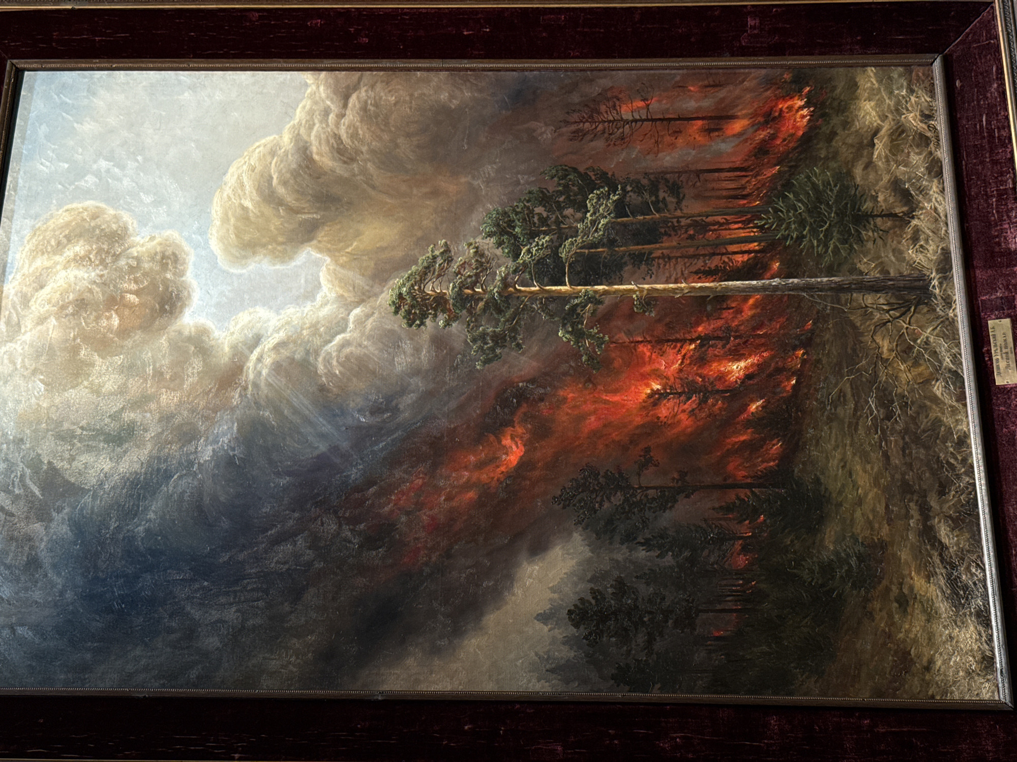 - "framed painting depicting a forest fire" by FM-R3Xq42, licensed under CC BY 4.0