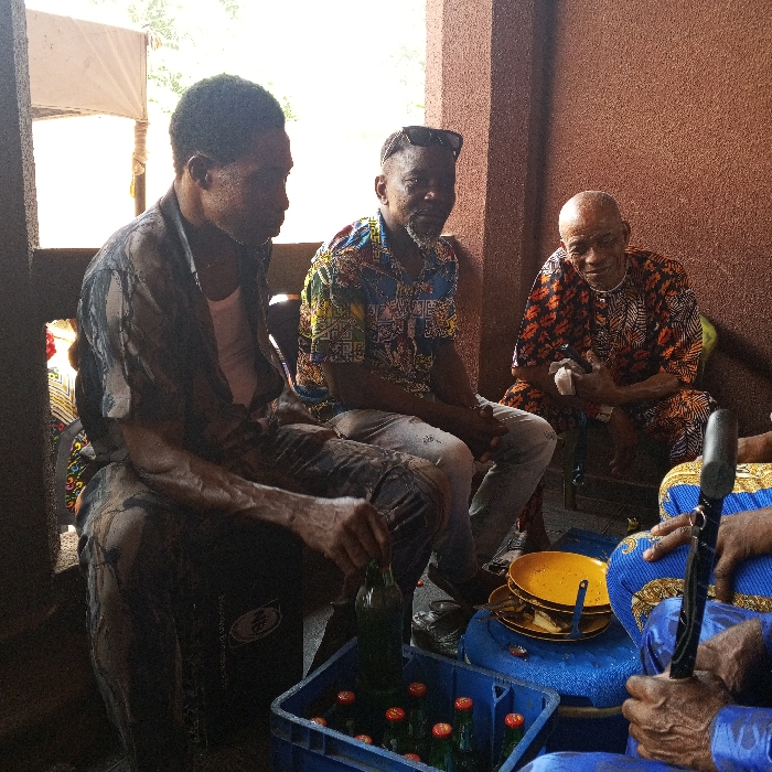 - "The image depicts four adult males engaged in a social gathering within a covered, semi-outdoor space in Orlu, Nigeria, characterized by reddish-brown structural pillars and walls" by FM-zGgZ32, licensed under CC BY 4.0