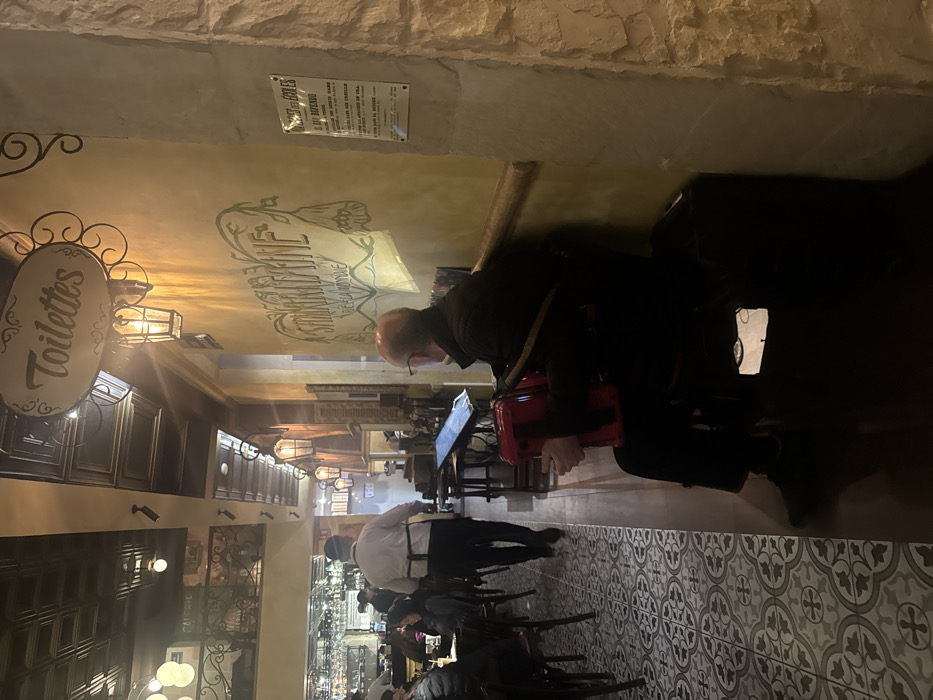 An indoor scene shows an accordion player in a restaurant or bar