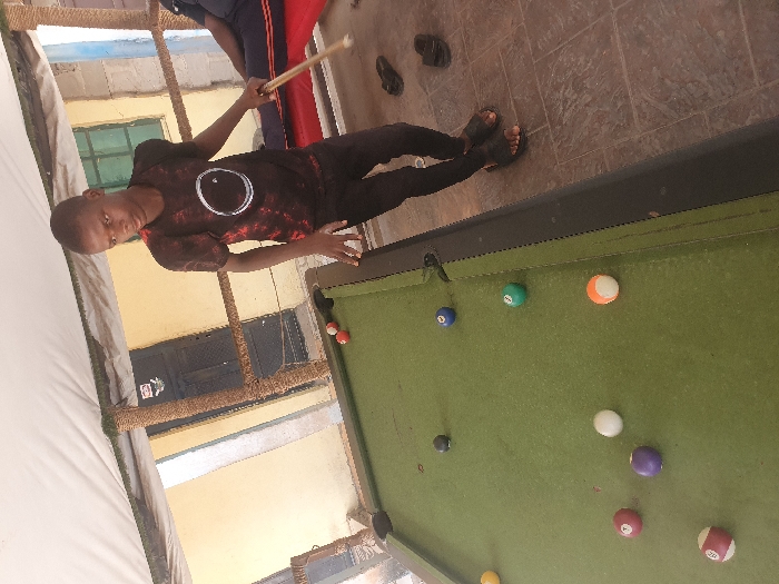 The image depicts an outdoor or semi-sheltered recreational area, presumably in Lokoja, Nigeria, though a precise location within the city is not ascertainable from visual evidence