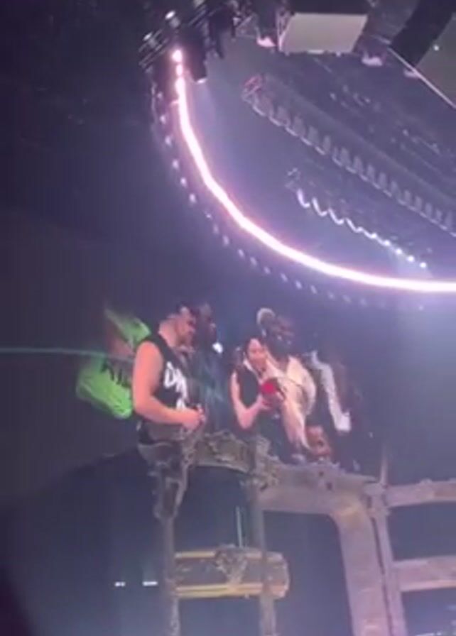 A video shows a group of people on stage at a concert venue