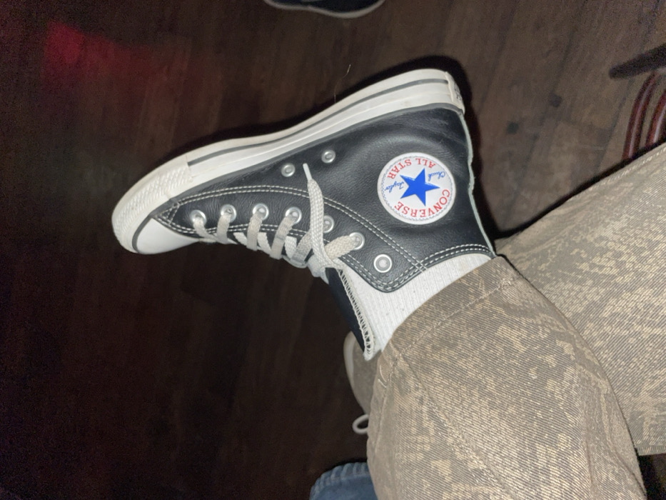 - "A black leather Converse high-top sneaker is on a person's foot" by FM-3b4qx2, licensed under CC BY 4.0