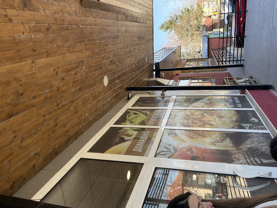 The image depicts the exterior of a food establishment located in Cherven Bryag, Bulgaria, during daylight hours under a clear sky