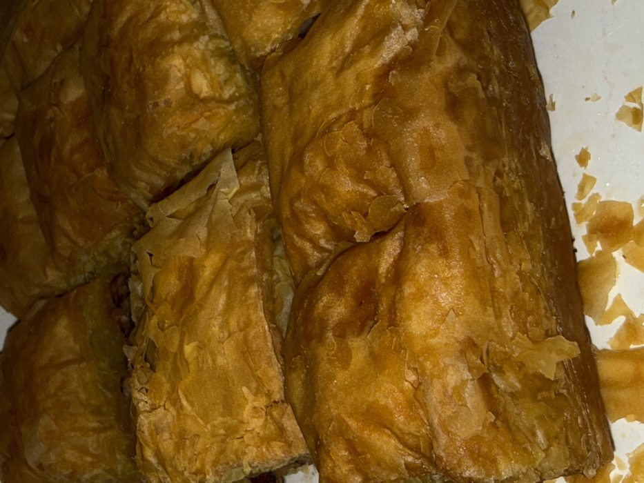 - "The image displays a close-up, overhead view of multiple pieces of golden-brown, multi-layered pastry, consistent with baklava" by FM-aULmF2, licensed under CC BY 4.0